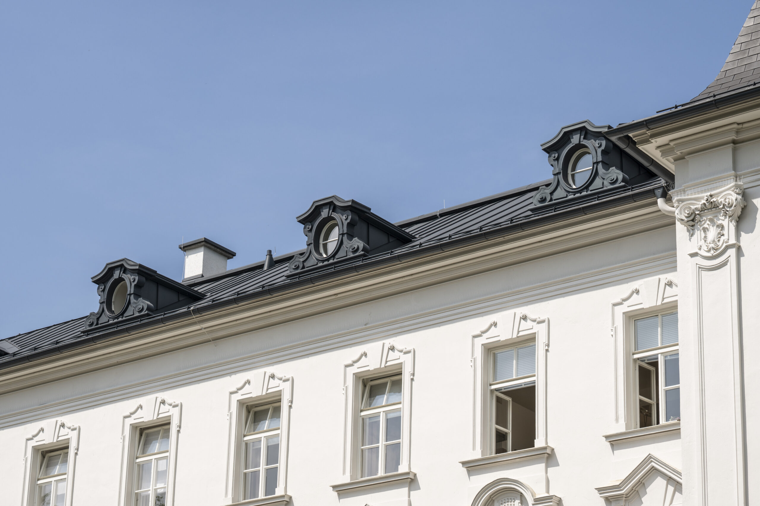 • Einbindung der Spenglerarbeiten in die historische Fassadengestaltung