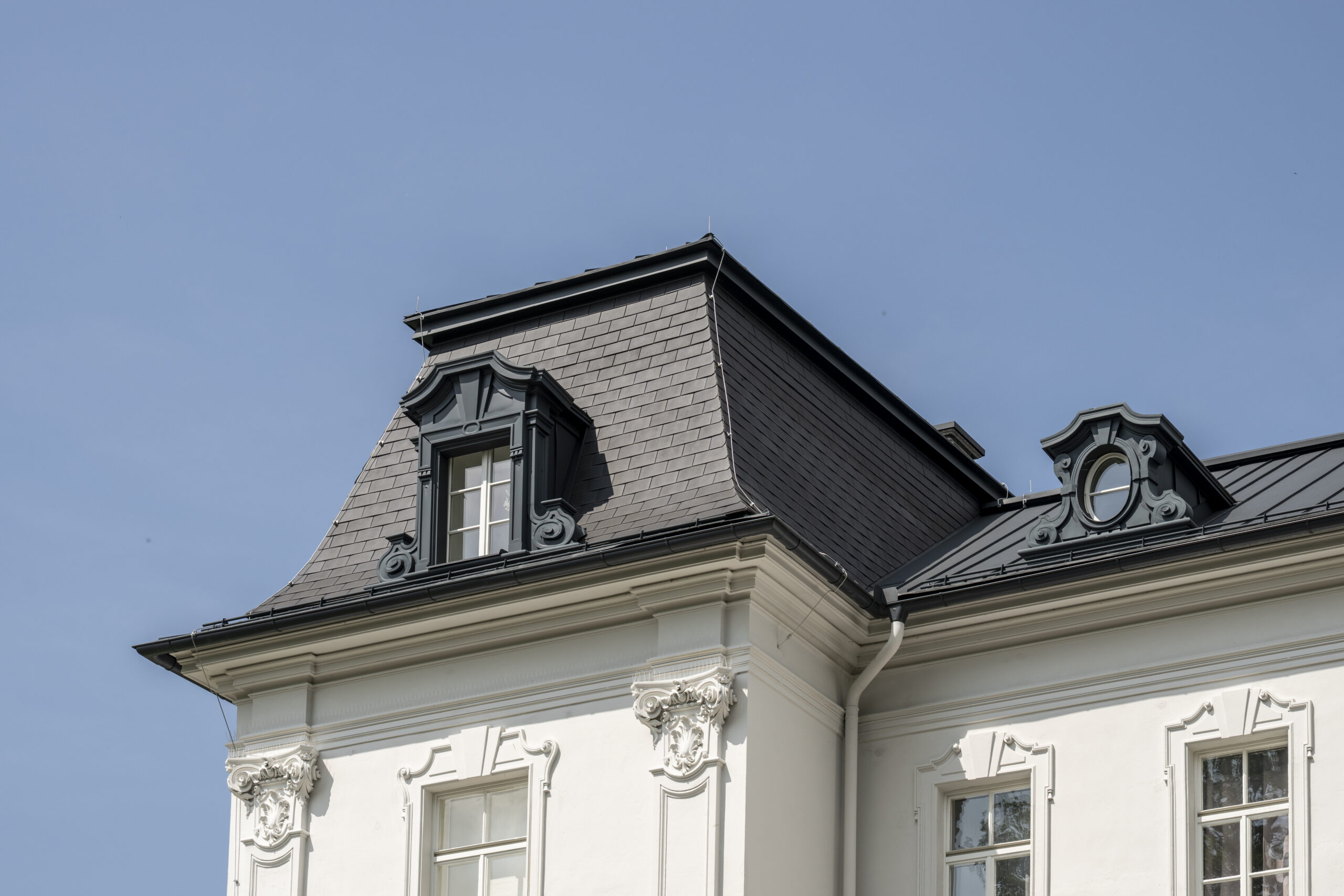 Ziel war es, die architektonische Substanz und die historische Dachform detailgetreu zu erhalten – bei gleichzeitiger technischer Erneuerung und energetischer Optimierung.